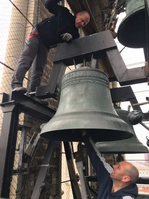 The New Bourdon is Lifted into the Tower with inches to spare!