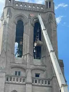 The New Bourdon is Lifted into the Tower with inches to spare!